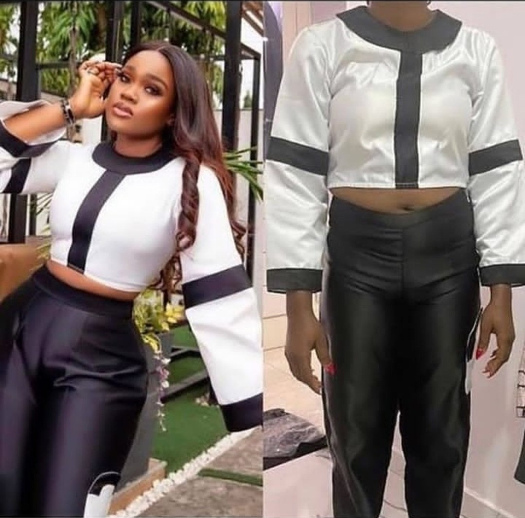 A customer ordered a two-piece similar to one worn by reality star CeeC but she was disappointed with what was delivered. The outfit the customer asked for is a white crop top with black details and black pants. Though the outfit that arrived looked similar, the material used was different and it didn't fit the customer. Disappointed, she went online to share a photo of what she was expecting and what she got. See below.